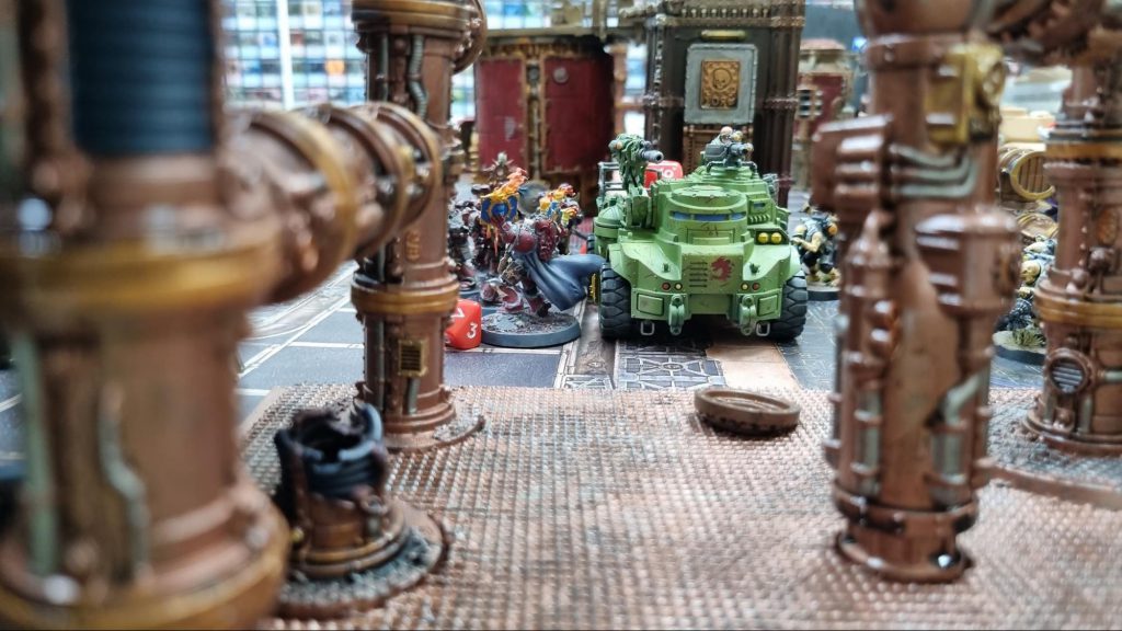The focus of the war has shifted to the area surrounding the Governor’s Palace, with the Imperials largely abandoning the prison to the forces of Chaos and the Cults of Genestealers. The flow of mutants has been slowed by the Imperial Forces, though the Agrippa Rippers artillery runs have been opening new entrances for the hordes.