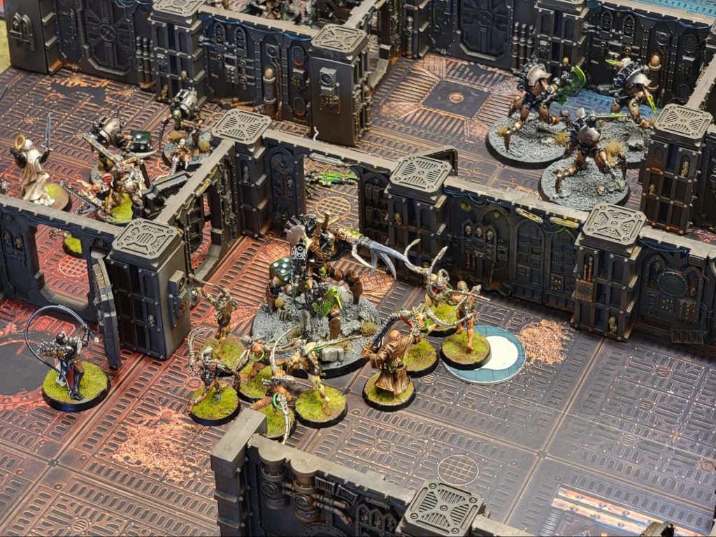 Fighting rages on the Moon as factions scour it for the secrets it may hold. The Aeldari of Craftworld Iásar-Athreith search for a hidden artifact known only to them. The forces of Chaos and the Imperium vie for control over the infrastructure left there. As it stands the putrid forces of Chaos are successfully keeping the Imperium away from the archeotech there with the Chaos Knights of Rusted Talon leading the charge.
