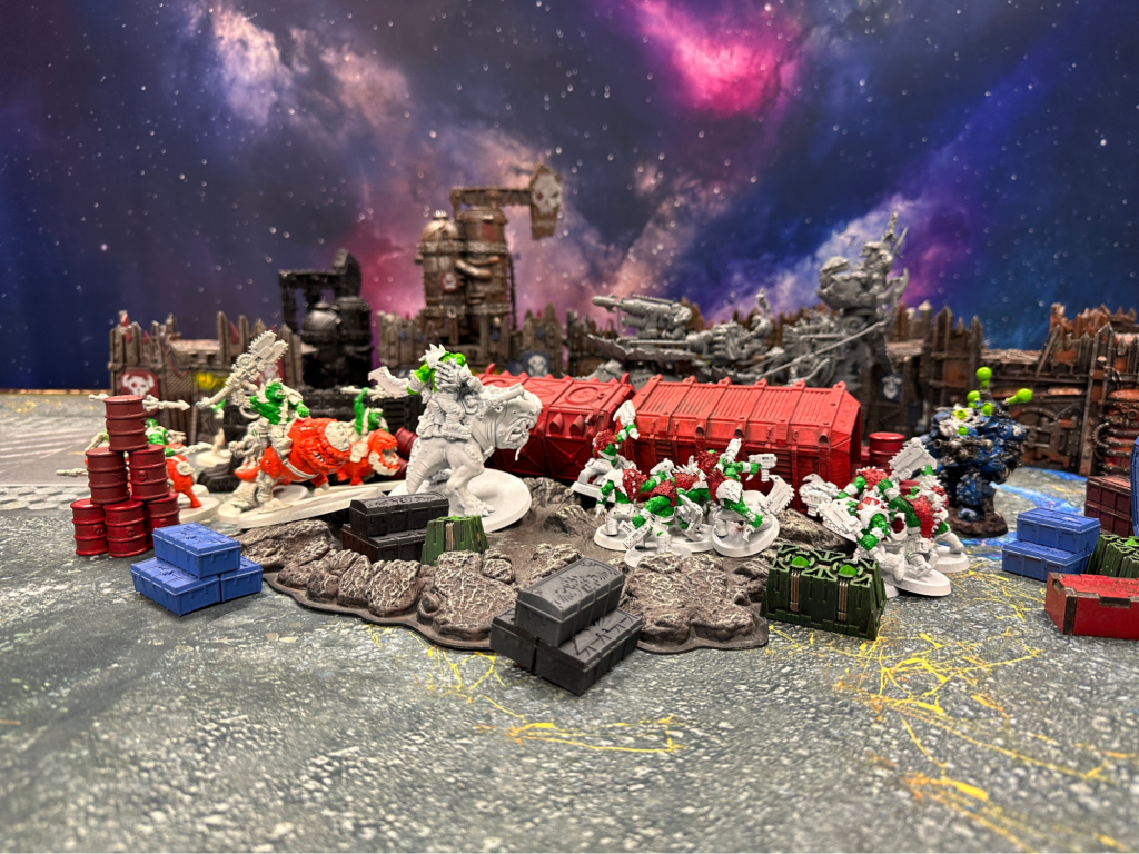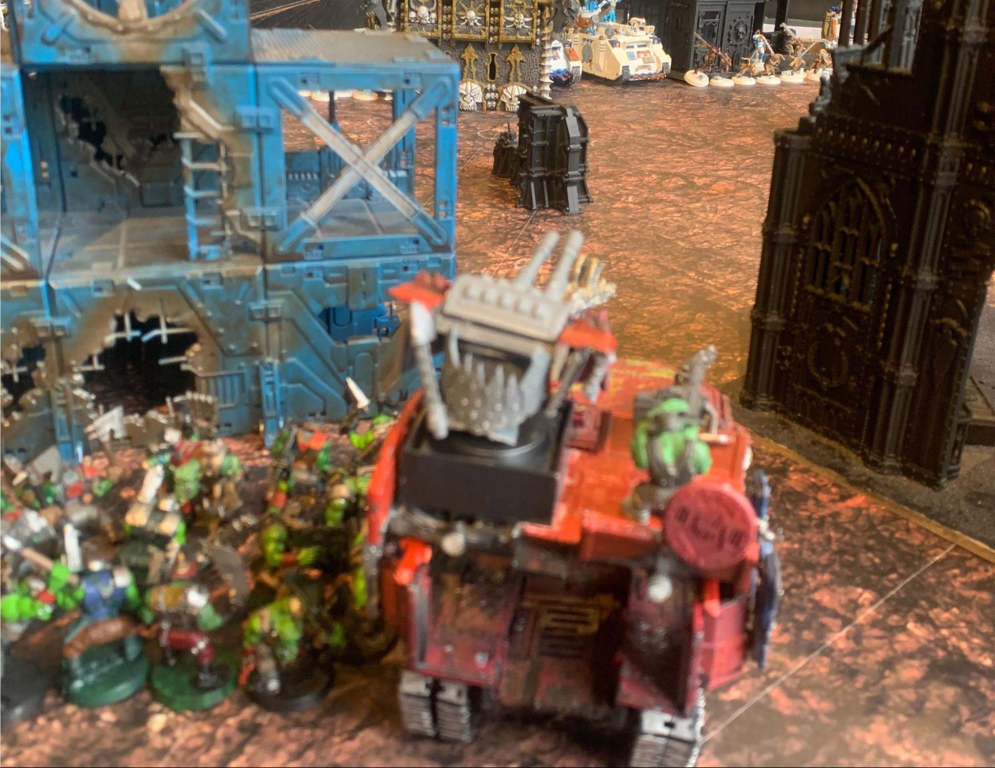 Jimbo’s Orks collect a massive pile of scrap successfuly. Photo credit Andrew N