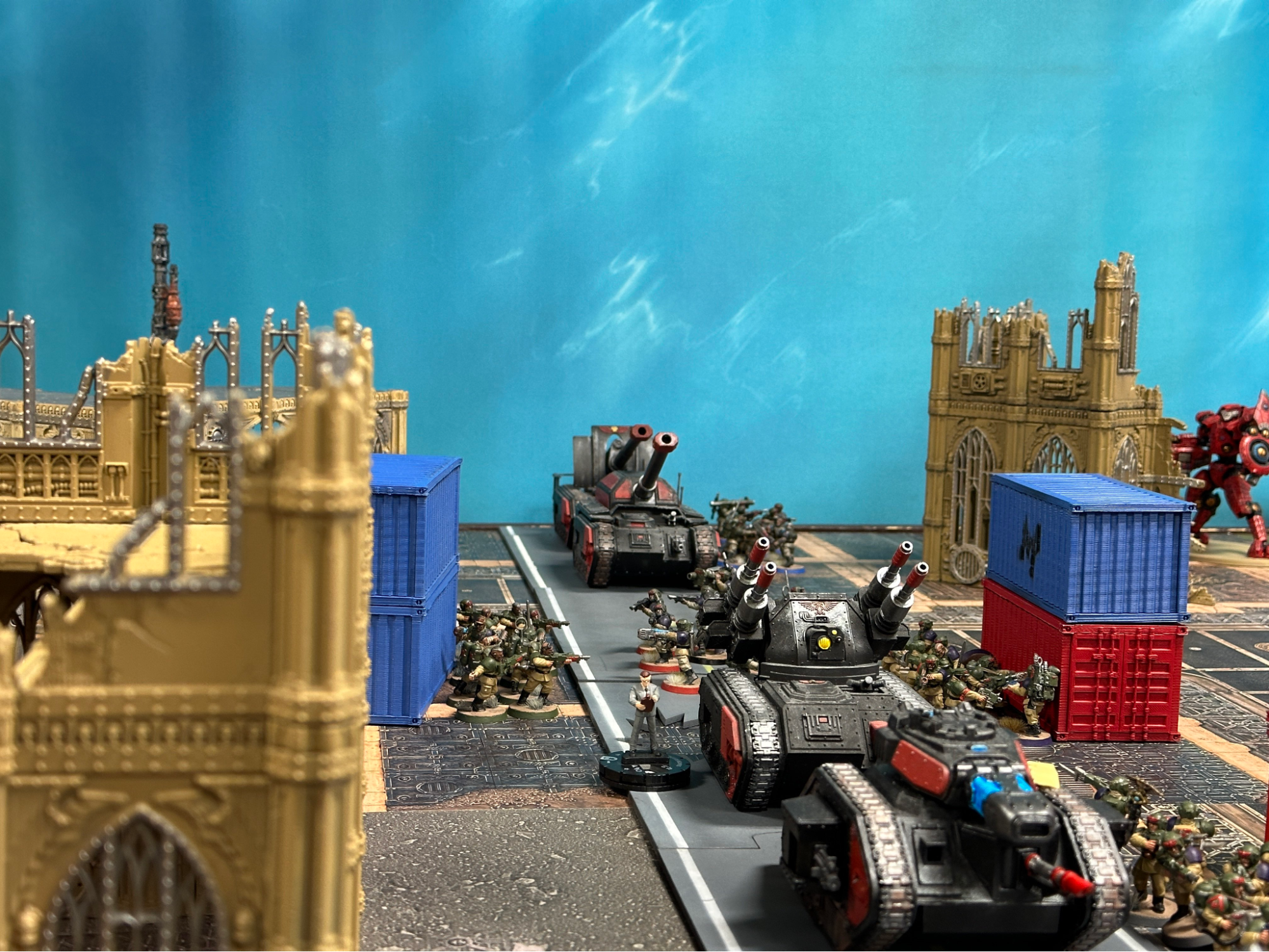 Our glorious Armory has been successfully held by the Emperor’s finest and supplies are now reaching local PDF and other friendly forces expediently. Our troops are now headed into the mysterious Steel-Spire Mountains to exterminate the Xenos threat that has entrenched themselves in the highest peaks of the range.