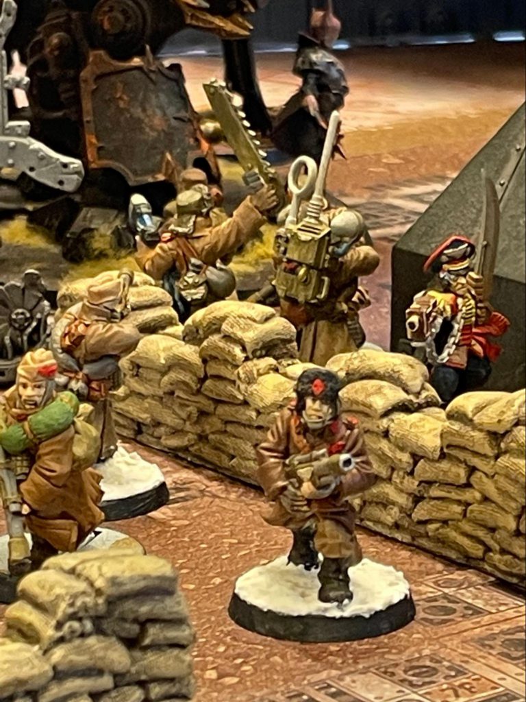 A brave and unshakeable defender receives encouragement from his Commissar as the 108th Valhallan engage a warp-tainted Knight. Photo: Eddie V.