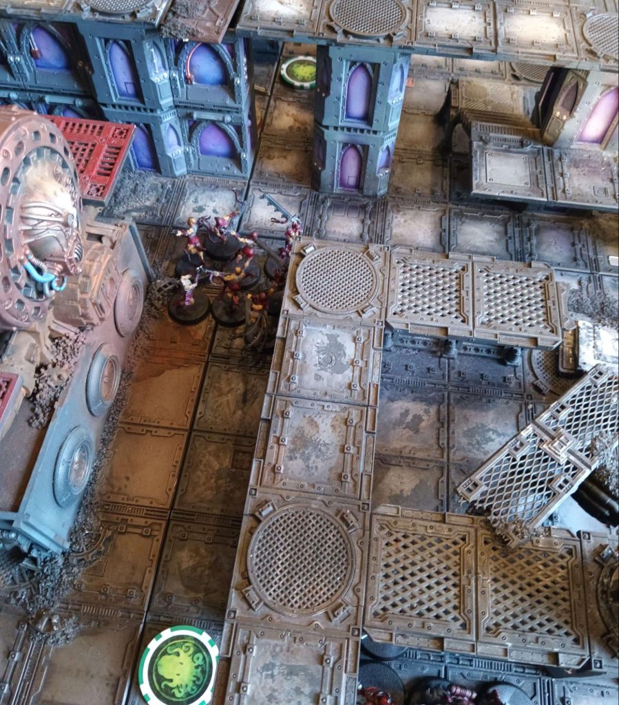 Unbeknownst to Malec, he had stumbled into a Votann warp core repair facility. Votann warp cores are normally heavily shielded in the hulls of their warships to keep the denizens of the warp away from the sensitive psychic material within. Tendrils of warp corruption from elsewhere on the station were drawn to this room the moment Malec cut the door and broke the warding seals; feeding off the warp cores like a babe seeking sustenance. Seconds after the shimmering warp tendrils reached the warp cores, reality tore open, obliterating Malec, his soul immediately consumed by the gods he worshiped so dearly. Space Station Pumilian is now under siege by the horrors of the warp.