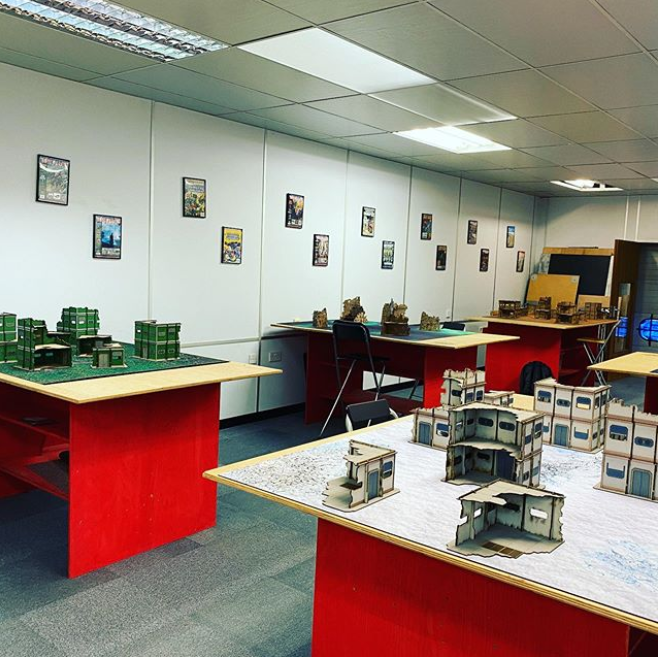 Entoyment Wargaming in Poole. This place was great, absolutely stuffed with a huge variety of ranges; definitely drop in if you're ever in the area. The shop itself was open selling drinks and snacks pre-event, and pretty much set the stage, with hand sanitiser in the entrance and strictly enforced mask requirements indoors (in line with national policy on masks in shops).