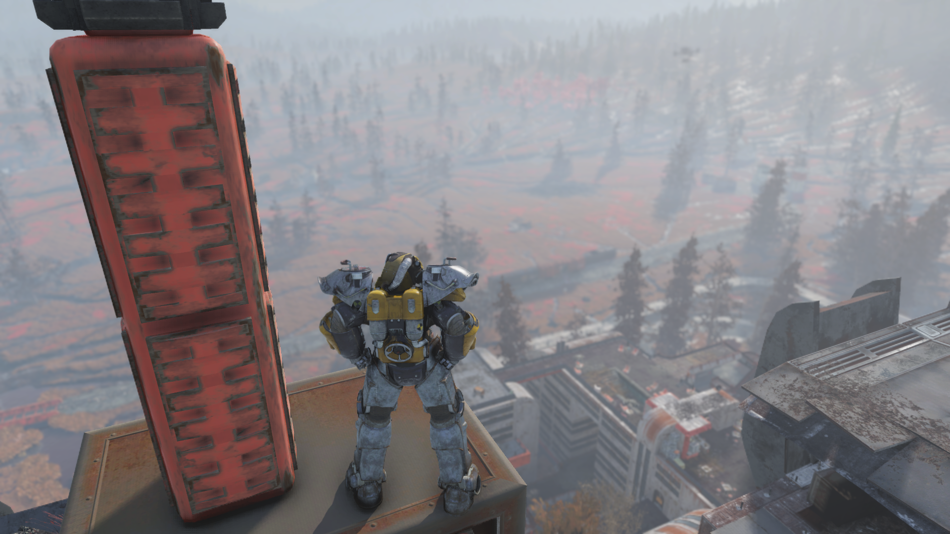 While up close the textures might be blurry or the models might look a bit dated, at a distance the world can look downright gorgeous. One of my favorite early memories was climbing a mountain in the largely empty southern side of the map, with nothing but the game’s sparse fiddles and strings to keep me company. As I hiked up the rocks and switchbacks in my power armor, I took in the sounds of the wind and the world around me, until finally I hit the peak. Trees, mountains, and the rusted husk of an old monorail stretched out before me as far as my PC could render, and I just sat up there and took it in. Feelings of limitless potential flooded into my mind, and it felt like the invisible walls behind me could open up into an endless wilderness at any moment. I hadn’t felt that way in an open world game since Breath of the Wild and the earlier Fallout 3 when I was in college, and I’ll treasure that experience here if nothing else.