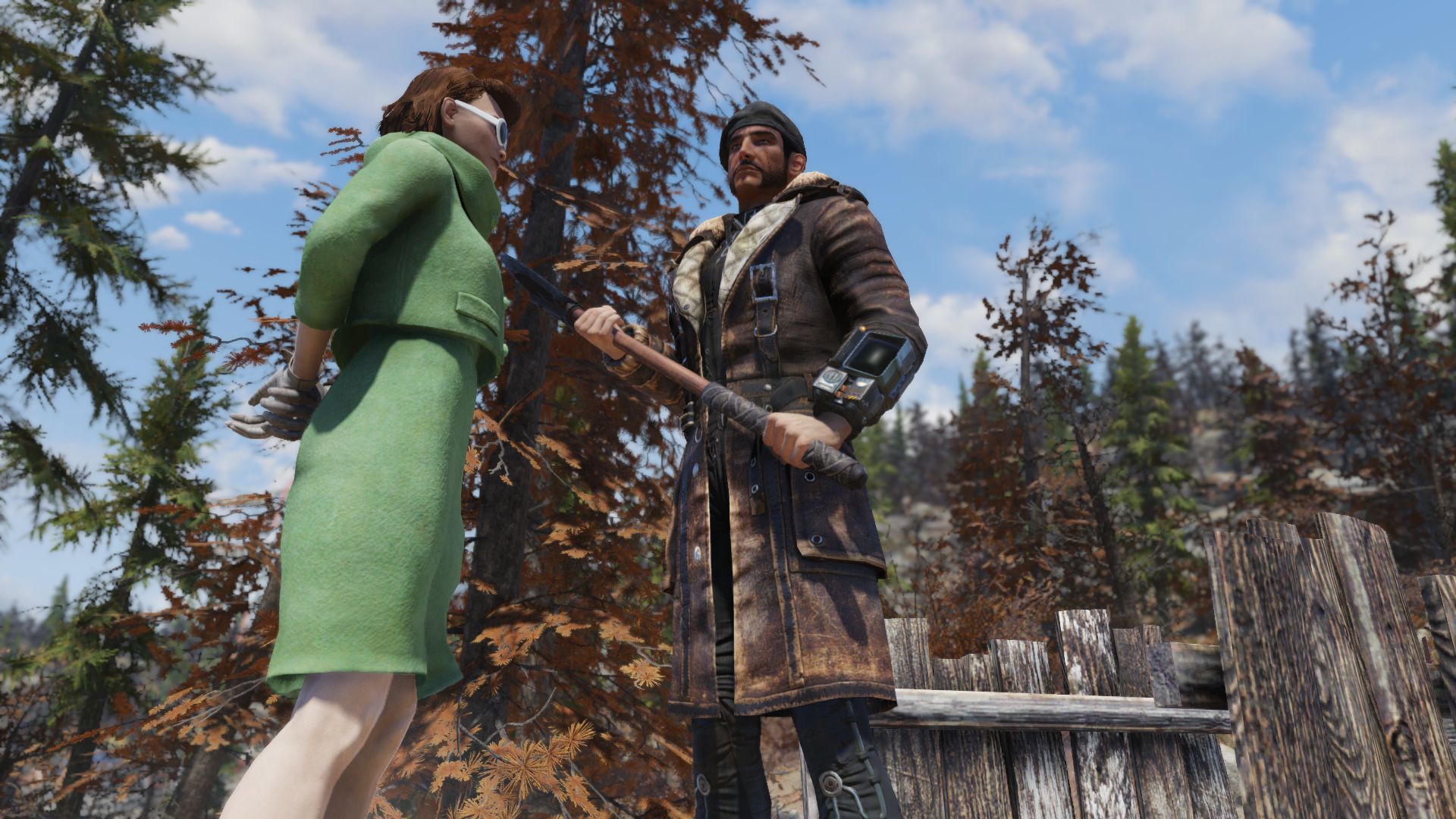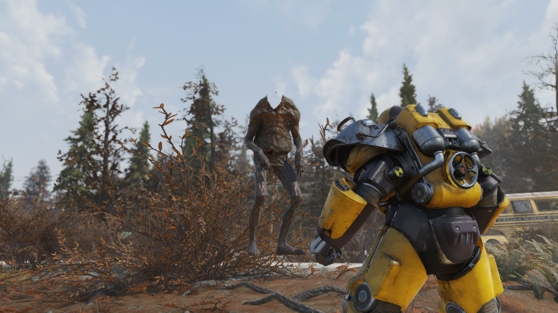 Wastelanders introduces the creatively named Settlers and Raiders to West Virginia, giving players new hubs to travel to and trade at, and plenty of new characters to meet. There were a few robots who talked at you before, but players can enter conversations with these new NPCs and actually choose dialog options and have conversations with them. There are even skillchecks in these dialogs, letting players learn more or skip entire sections of quests with the right spread of their S.P.E.C.I.A.L. skills. Imagine that, playing a role in a role playing game! In one particular early game quest, the player is trying to convince the two warring factions to inoculate their populaces from the Scorched plague that ravaged West Virginia the first time around. Interestingly, the first year or so of the game is still canon, and if you played during that time and accomplished a number of those quests, you get a leg up on some of these new ones. While my character had a high enough Intelligence to convince the Wasteland anti-vaxxer that the Scorched plague was real and terrifying, my friend’s character wasn’t, meaning they had to go on a whole new quest to convince that character what was up.
