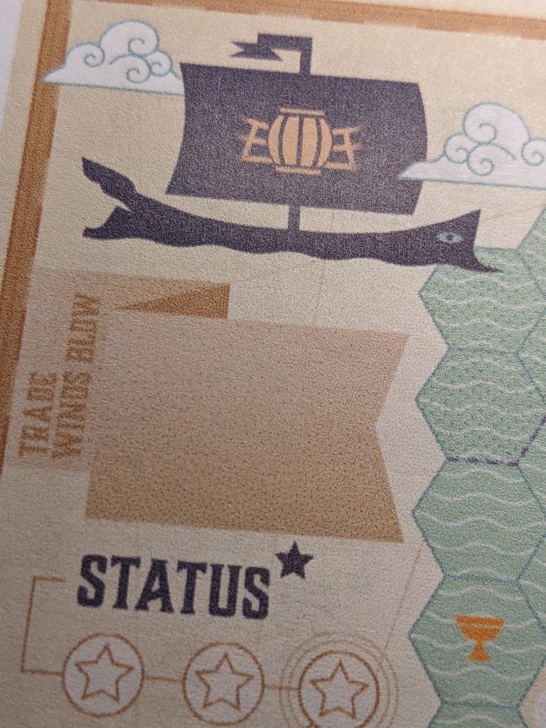 But in Voyages, you voyage. You’re carried on the strong current of the game’s narrative, thematic flow and you are immersed. Like an ornate figurehead on the prow of a galleon, the map makes an outstanding first impression on the table and everything unspools intuitively from it. Including a willing suspension of disbelief and your fired-up imagination. You’re on a journey. A race. Chart your course. Make unexpected stops and have unexpected encounters. When you go off course sailors can steer you back. When you don’t have enough sailors, you’re a ghost ship relying on dead reckoning and may be dead in the water. And at game’s end you have an archival record of your journey, no matter how successful or harrowing it was.