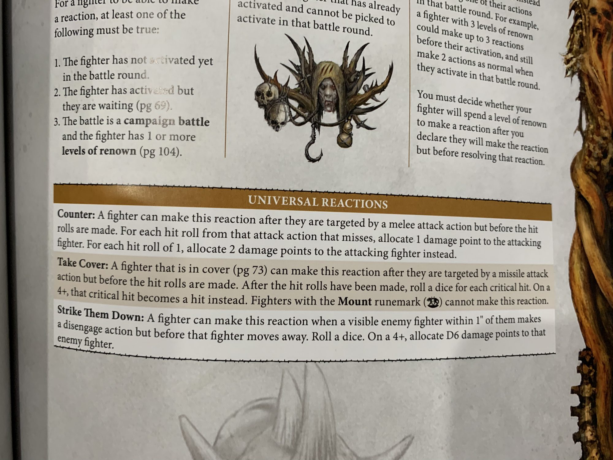 The Core Rules include 3 Universal Reaction, and each faction also receives a unique bespoke (old factions get them too, no worries!)