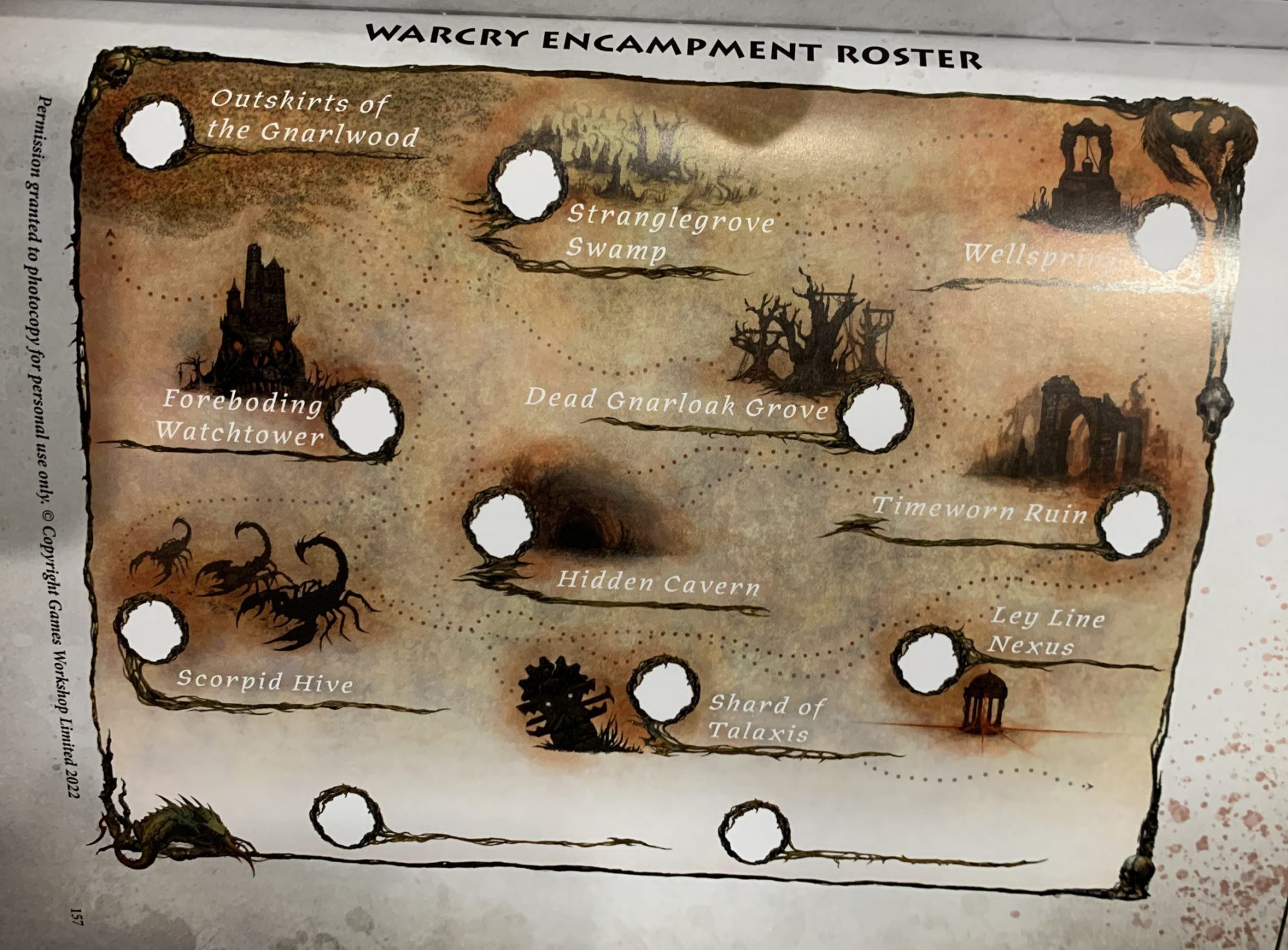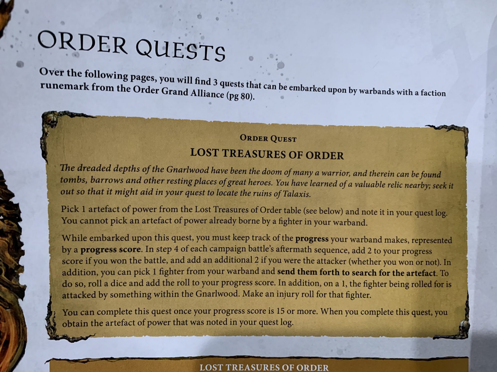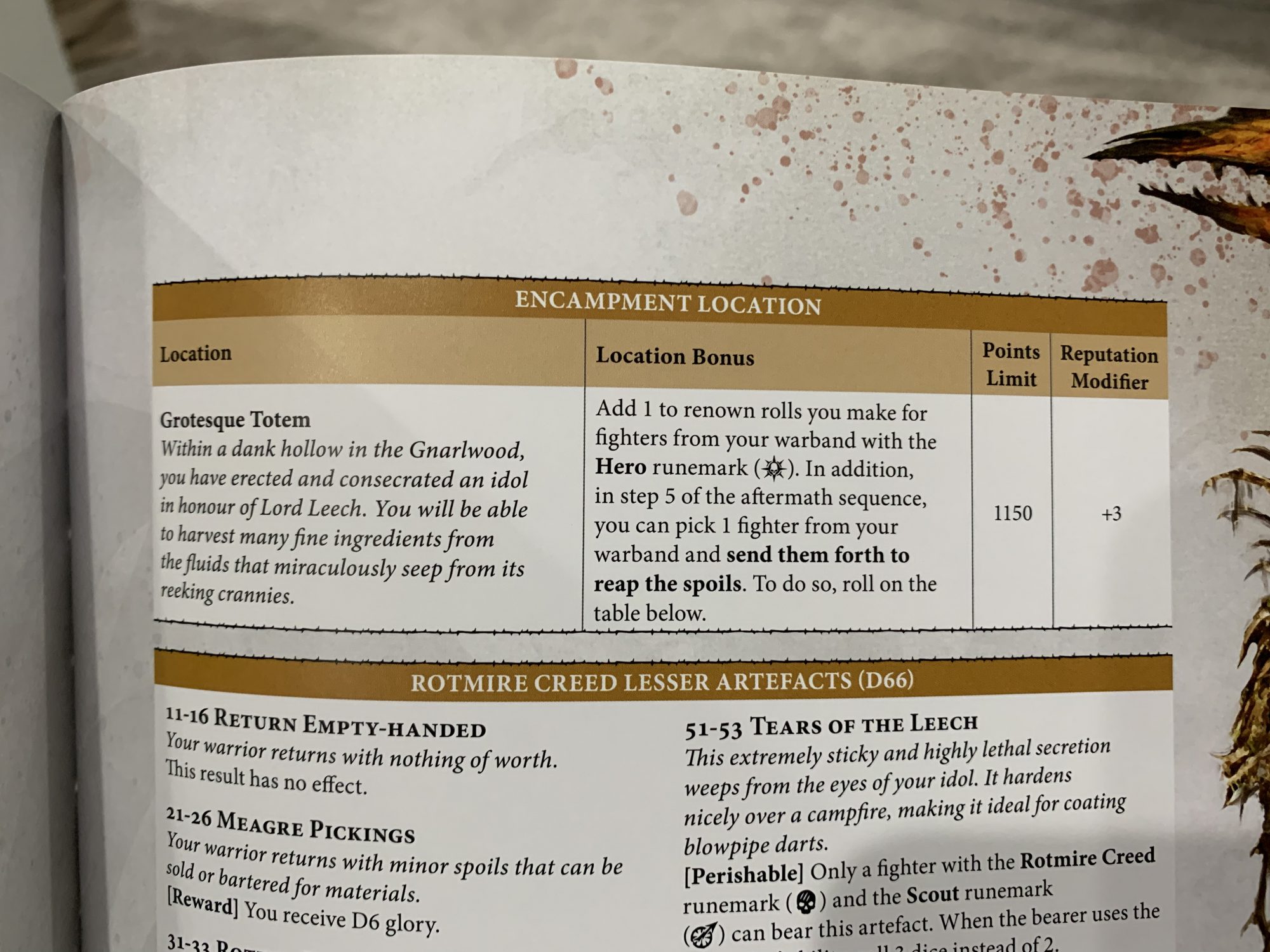 Additionally, a Territory management system has been added. All players begin on the outskirts of the Gnarlwood and can venture out to explore during the Aftermath sequence of a Narrative game. Individual models are selected to explore with a chance for Success or Failure (or ruin!). You can relocate your encampment depending on what you find, an eventual necessity. These special locations provide bonuses but eventually your encampment will be found and raided by opposing warbands, losing your benefits and reducing your warband size until you can find a new one.