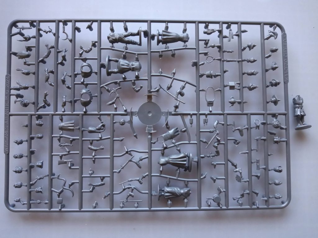 Most of the Wargames Atlantic Villagers sprue. I may have gotten so excited working on this kit that I forgot to leave any of the sprues complete for a photo. Oops. Credit: Acetronomer.