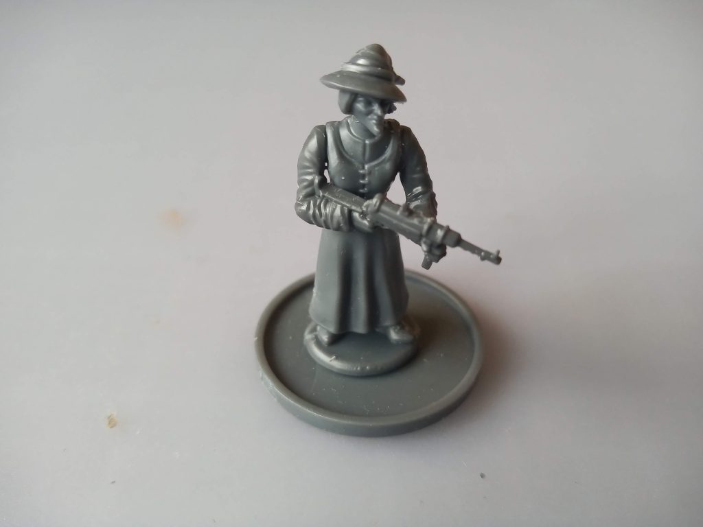 A witch with a submachine gun, built using this kit for the body and head, and arms from the Wargames Atlantic Partisans kit. Credit: Acetronomer.