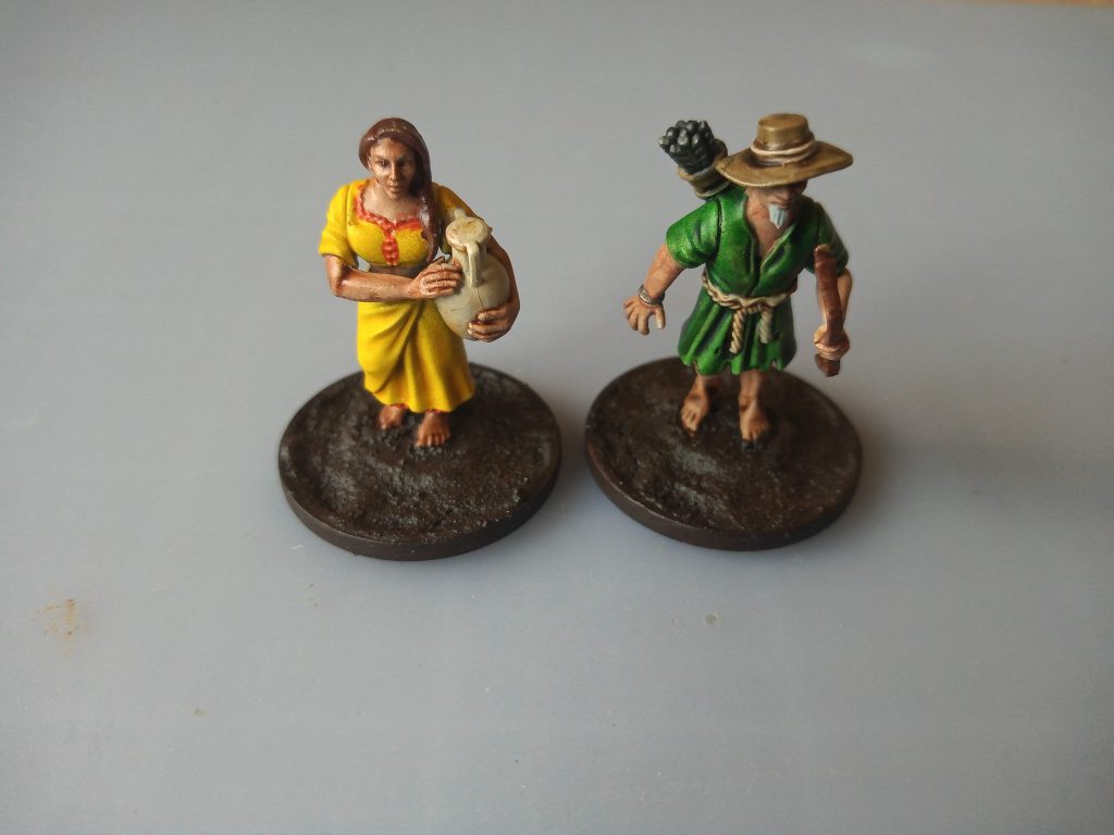 Two villagers made by kitbashing with the Wargames Atlantic Citizens of Rome kit, using the amphora and bow and quiver from that kit with the bodies and heads from the Villagers kit. Credit: Acetronomer