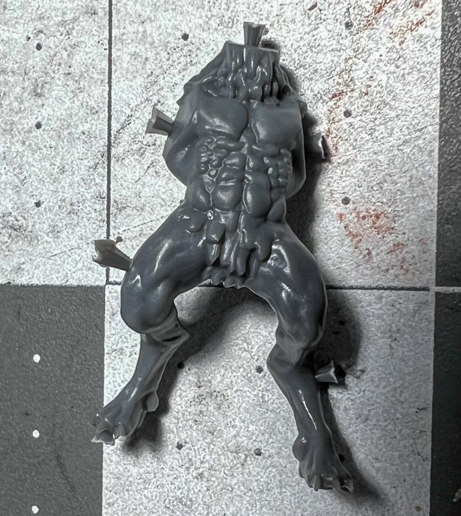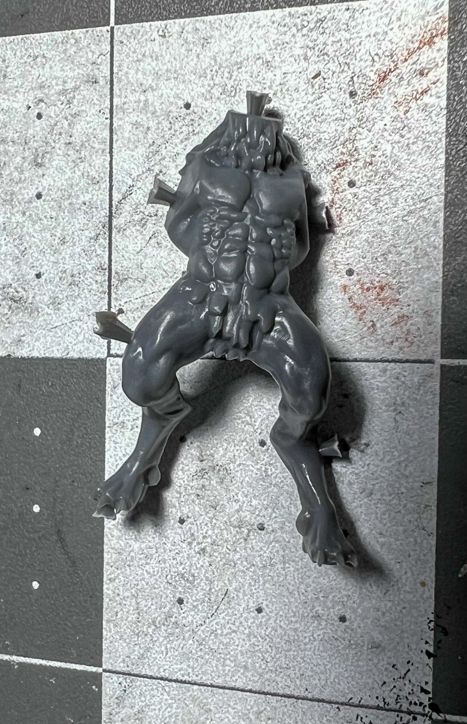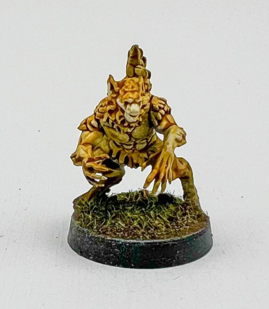 I don’t know why I thought that all flesh tones except for the modeled tufts of hair would look good, but it’s so weird and off putting that I couldn’t keep it like this even as a gag. Someone with more skill than me could maybe pull this scheme off as a body horror kinda thing but that’s not my bag at all. I eventually settled on two different schemes: one with gray flesh and dark hair, traditionally painted, and one that just tries to blend various contrast browns together to get some transitions between fur and flesh. I am far from a great painter, so if you want to see someone with real skill take these on, I suggest looking at the product page for shots, they’re all wonderfully done.