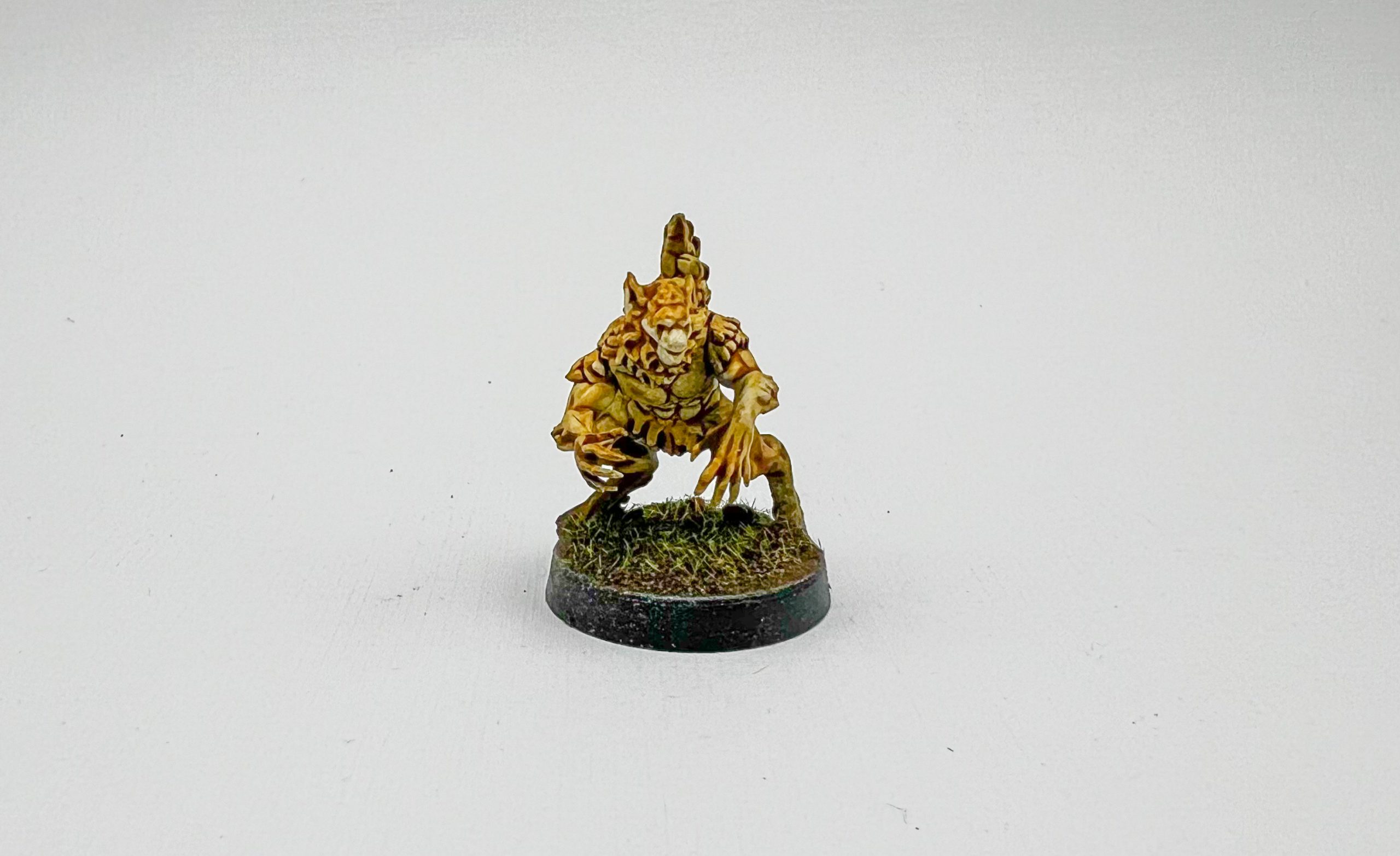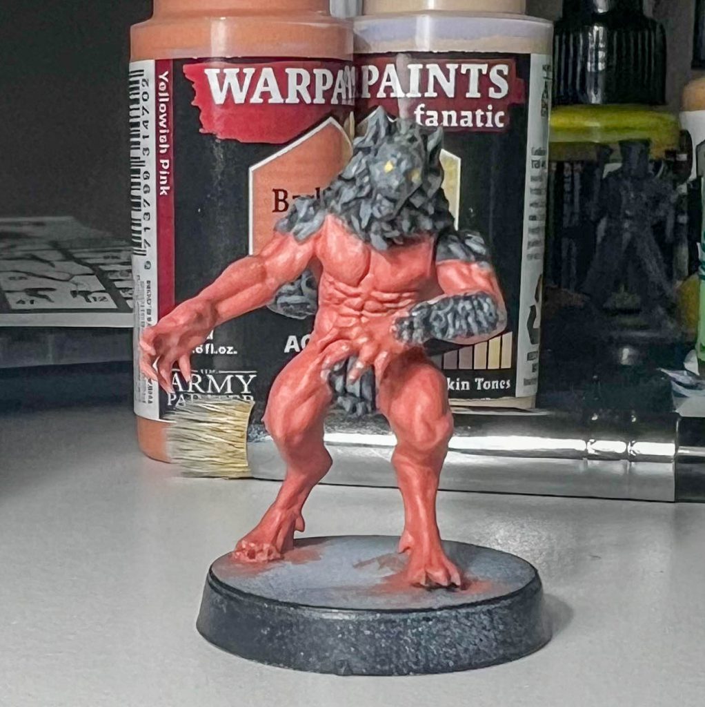 The blonde, golden retriever-esque werewolf ended up being my favorite, and also the easiest to paint. It’s a blend of Vallejo Express Mummy White on the skin parts, and Vallejo Express Bag of Bones on the fur. The longer working time from the express colors makes it pretty simple to wet blend the colors together, and the deep, sharp recesses take contrast-style paints super well. I did a final highlight with a bit of Army Painter Fanatic Brainmatter Beige to give a bit more definition and tie it together with the other models I painted.