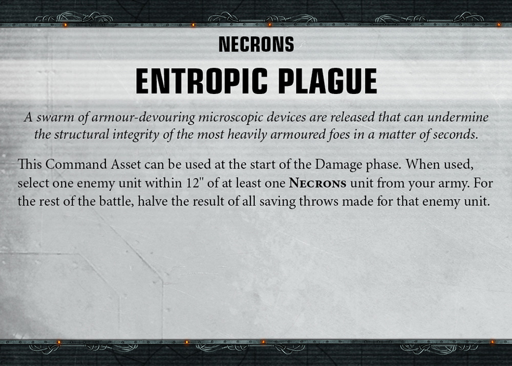 Defensible Terrain is much more interesting, as it covers area terrain and things like ruins. Basically if a unit is wholly within 6” of a piece of Defensible Terrain at the start of its Move action, it can essentially “embark” into a piece of Terrain by Garrisoning it, allowing it to break coherency and from that point, LoS and ranges for it are measured to/from the terrain footprint. While garrisoning a piece of Defensible Terrain, unmodified save rolls of a 6+ always succeed, so it basically gets a more traditional cover save.
