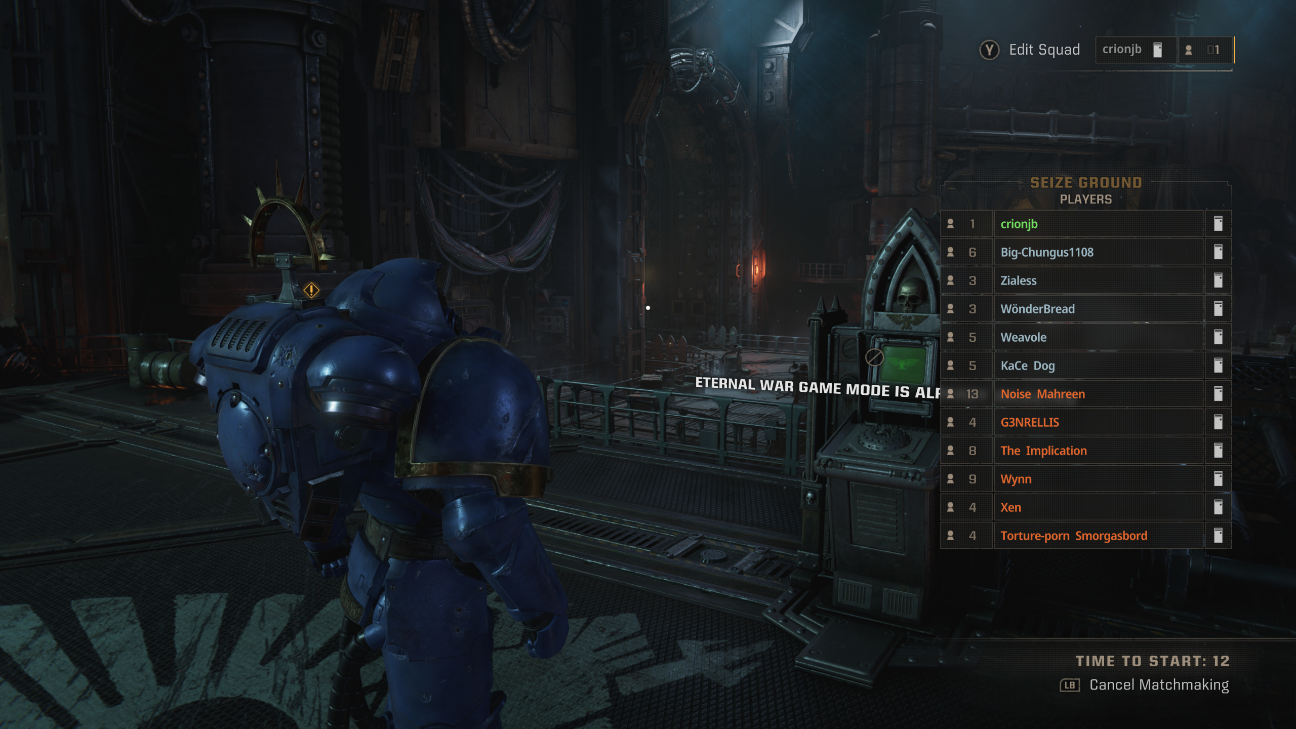 Matchmaking on day two of release for Space Marine 2. Things should level out a bit more as more people jump into the pool with general release.