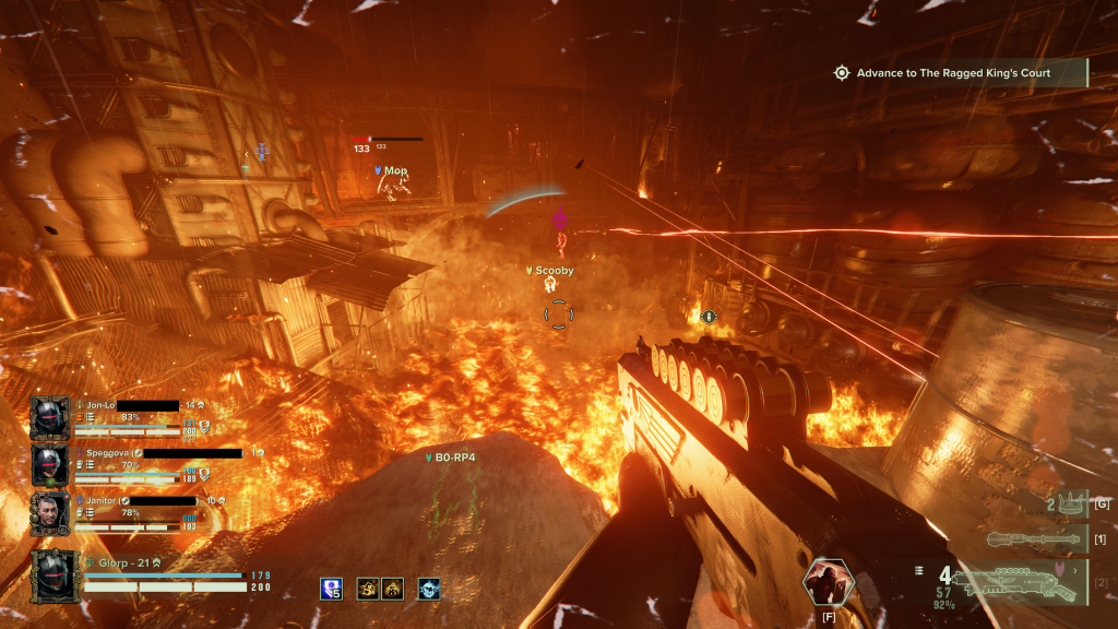 There’s also a simple way to direct its wrath as well that rewards a greater gameplay loop. If you mark a special enemy twice, the dog will launch like a ballistic missile covered in fur and gnashing steel-jaws and clamp down on them, holding them in place for your team to finish them off at your leisure. It fucking