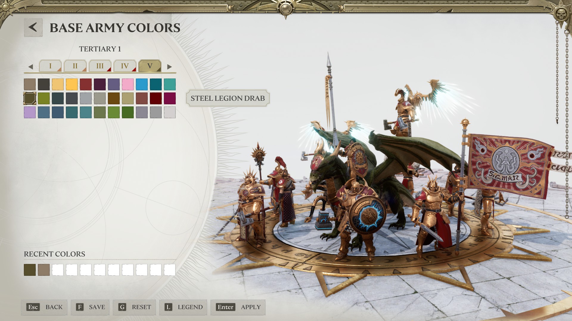 The Undying Phalanx. The system works responsively and intuitively, but has a somewhat limited palette. You can also paint individual units, so if you wanted to do the Dark Angels thing and have your Liberators wear green, your Annihilators wear white, and your Prosecutors wear black, you could. You can also customize your multiplayer avatar, the frame around your display name, and so on. It's nothing as intrusive as