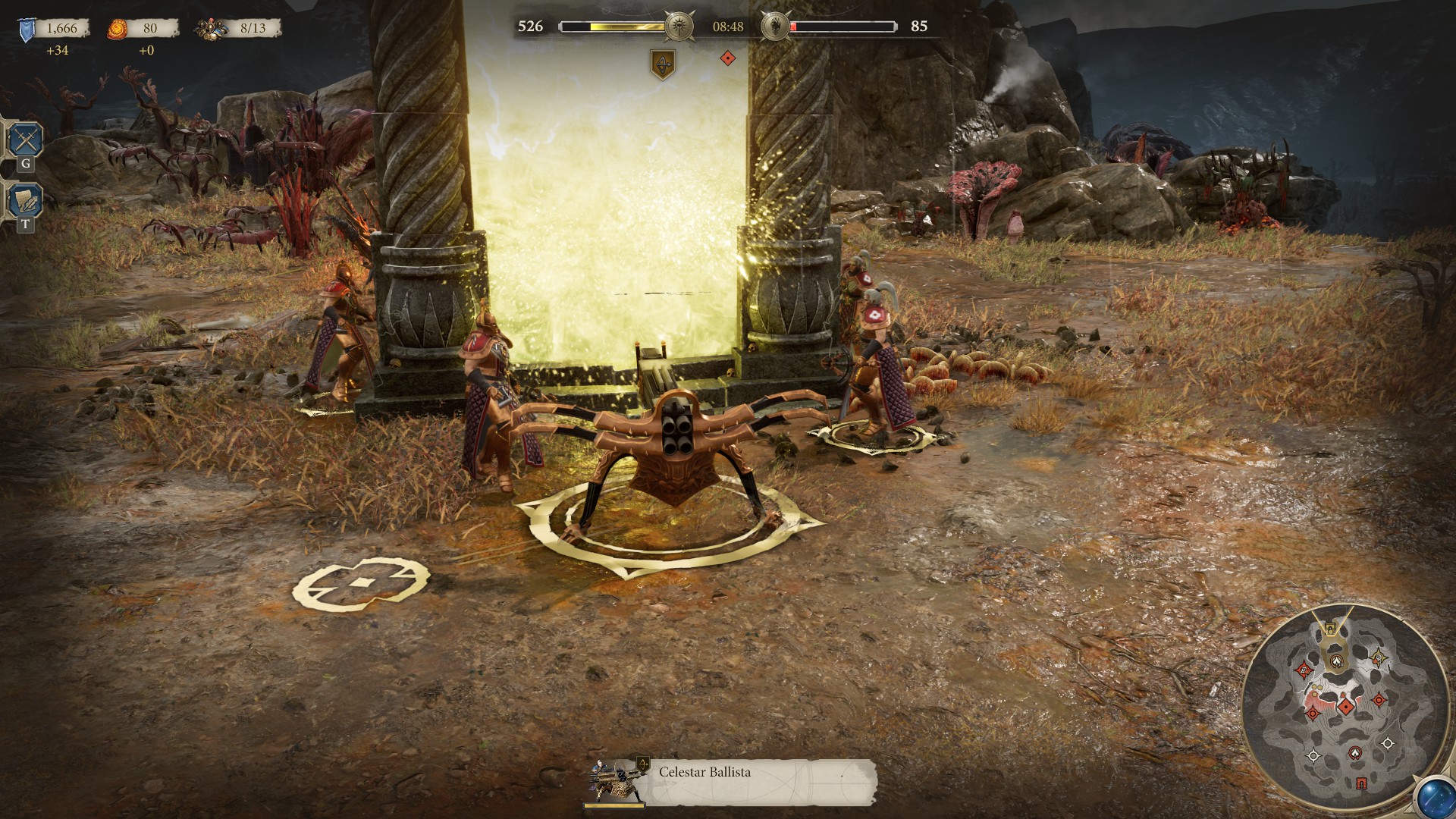 I expect to run into bugs in any game at release, and I ran into a few here. There seems to be a problem with artillery across the board. My Celestar Ballistas would get stuck as they came onto the field, their weapons immobile as the crew danced in circles around my realmgate playing ring around the rosie. Similarly, my Kruleboyz Killbow would slide away on its own volition, leaving the gunner behind. One or two maps have some chokepoints where units will just get stuck, and the pathfinding is very good at finding these bottlenecks. I would randomly get a bug where my keyboard stopped being responsive and the camera got jerky. This was fixed by opening and closing a menu or restarting the game. Most of these are inconveniences that can be played around, but that last one can prove to be deeply frustrating when you're in a key battle.