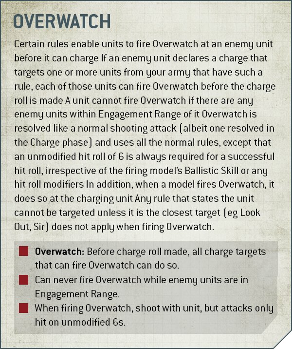 - Certain rules and conditions enable a unit to fire Overwatch but not every unit can do it.