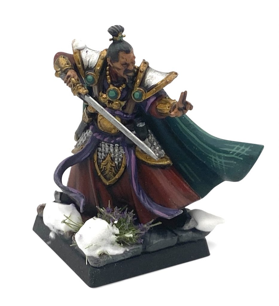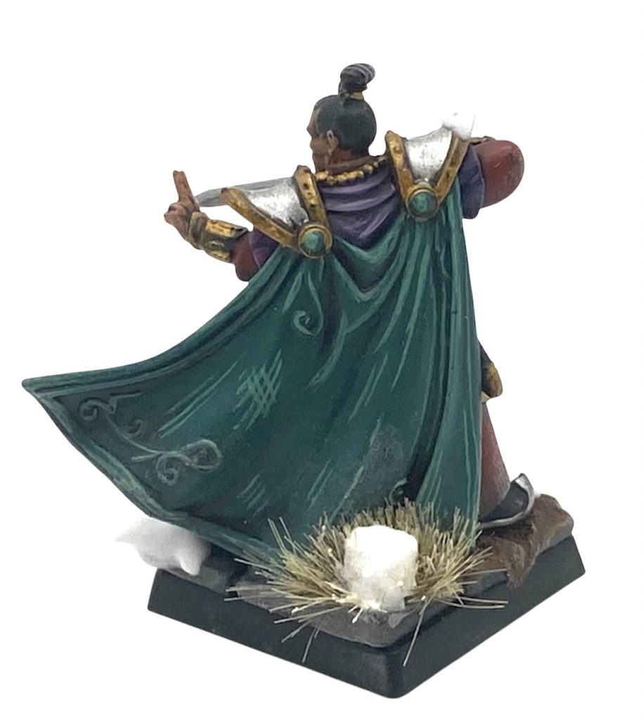 As with the Jade Warriors before I was disappointed to find only one pose for the champion here. The theme running through the OW ranges seems to be a lack of variety in command models and this is a shame in a game which promises massed hordes of infantry. There is some space to bash here though. Made mine into a (more humble than the Astromancers) Wizard. Dragon from gate masters kit tops his staff and a re-positioned bow drawing hand makes a fine ‘magic fingers’ right arm. Neat.