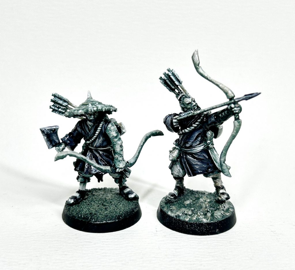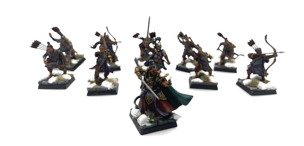 The only painting I’ve done on these is to continue the ‘Twilight’ scheme I tested on the Jade Warriors Captain. Kinda love the muted and restricted palette with extreme contrast. Not sure I’d do it for a whole army, but fun for a warband. Now that I have a good few of these guys I think they’d make a fine Frostgrave Warband (one of my favourite skirmish games) and I’m going to get them all painted up for that.