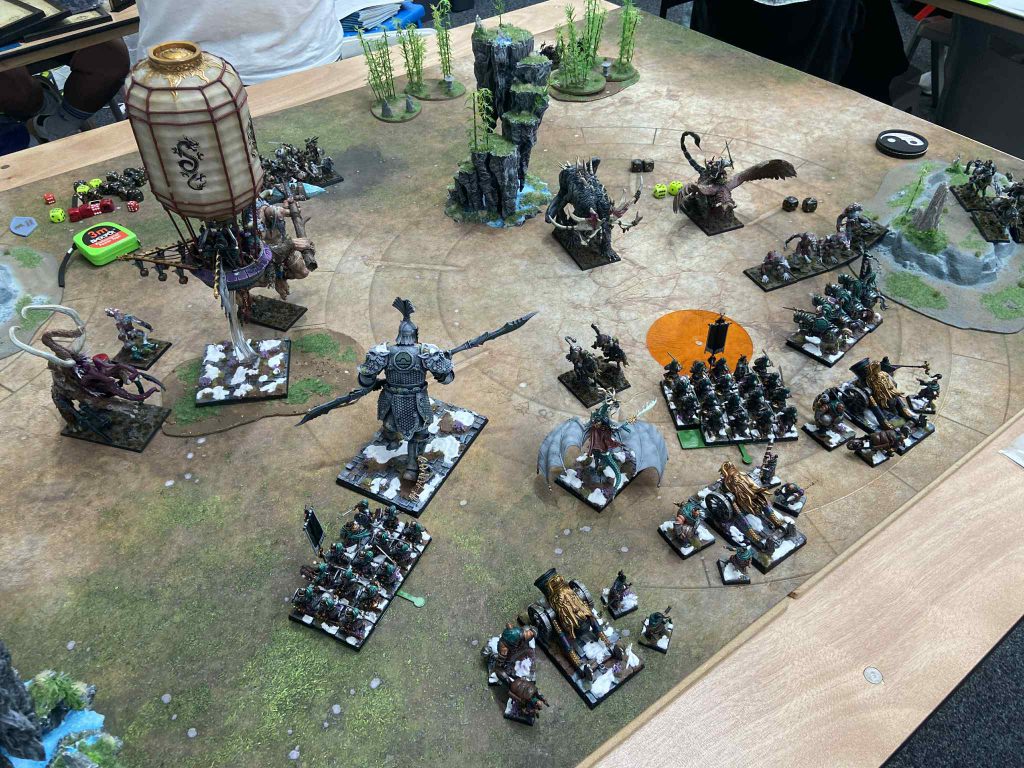 The above picture is from one of my recent event games with Grand Cathay. My Shugengan has used Column of Crystal to deny the charge but has also cast the Cathay spell