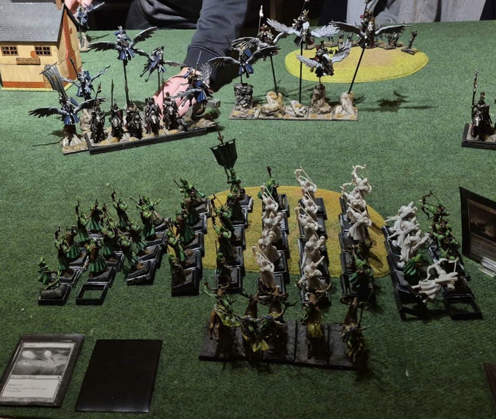 Effectively this is a maximum unit of Pegasus Knights with 2-3 heroes embedded in the unit. The most common version of this unit is in the Bretonnian Exiles List to leverage the Banner of the Zealous Knight which gives the wielder and their unit Vanguard. It is probably the single most broken unit in the entire game.
