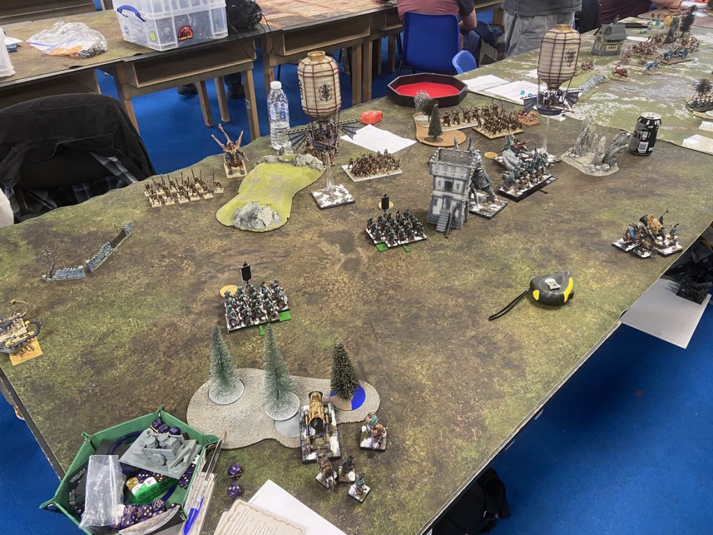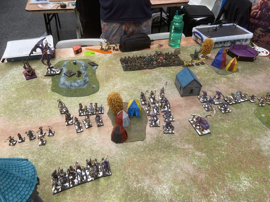 Warband rule) by having 25% of the unit in it. As a result of this, the Goblin player has effectively painted himself into a corner and really limited their options. If they had deployed on the left hand side with the hill, then there's a lot more space that could have provided an easier escape route. This comes back to planning out a little more and thinking about where units and armies are going to move that might save you in the early game rather than getting caught between the wrong types of terrain for your army.