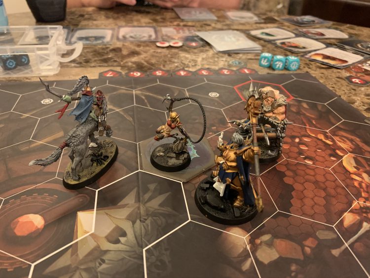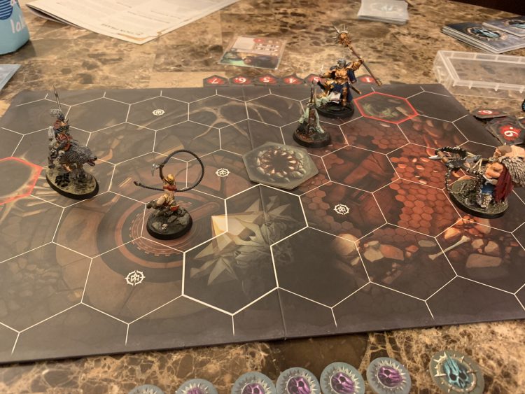 Mortis is that there is only 1 objective. All fighters are funneled towards the center objective where your various super-powers mean that you're often standing next to each other rolling dice back and forth. Yes, all of you are combining various powers to roll handfuls of dice at a time, but when everyone is so broken that nobody is broken the net effect can be a whole lot of nothing. In my Khamyss game, the objective I stood on also prevented me from being the target of gambits. I was the rock and the hard place, the immovable object (she can't be driven back) and the unstoppable force.