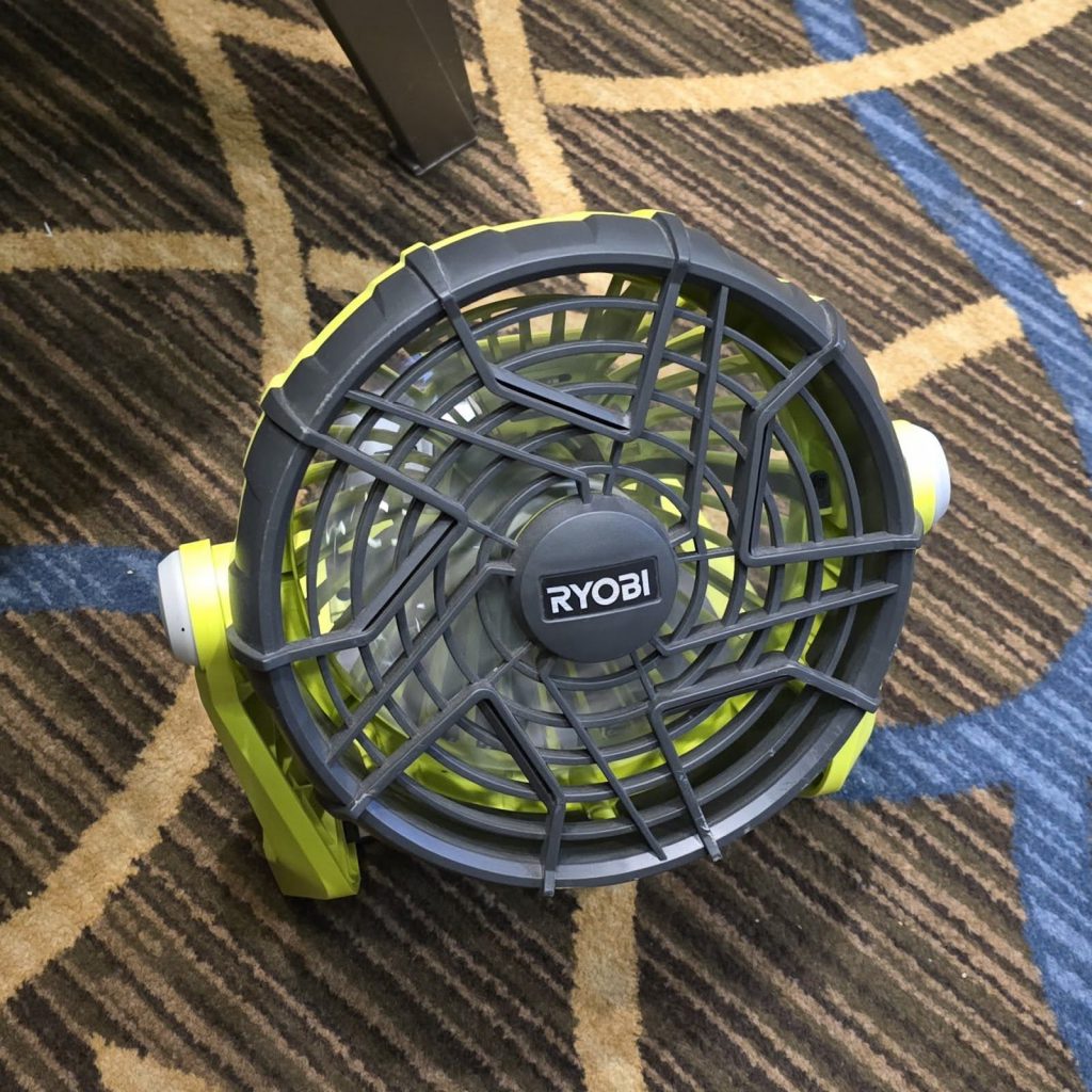 Battery powered portable Ryobi fan. This may genuinely make it into my regular event kit. Credit: Jake