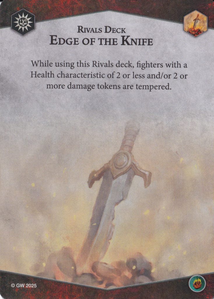 In this deck review I am going to talk about the theme of the new Edge of the Knife deck, take a look at each of the cards within it, highlight a few of the cards that I am personally interested in, consider warbands that can pair well with the deck in both Rivals and Nemesis, and finally look at some other Rivals decks that can combine with Edge of the Knife for a solid Nemesis option.