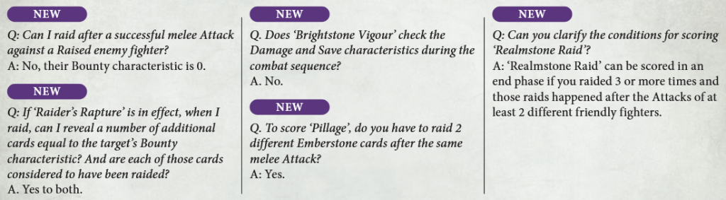 No FAQs for Blood of the Bull, Kurnoth's Heralds, Deadly Synergy, or Hunting Grounds. This isn't unusual given they were just released and there probably haven't been too many questions submitted yet (although I've certainly sent some in!). Hopefully we'll get documents for these four releases in a reasonable time frame.