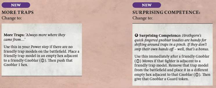 More Traps ability still places a new trap down as normal, but now you get to then push that gnoblar one hex after dropping the trap. Additionally,