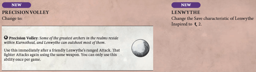 One model of this warband, Lenwythe, is receiving a few minor tweaks despite Kurnoth's Herald's relative newness to the scene. The first is a slight adjustment to