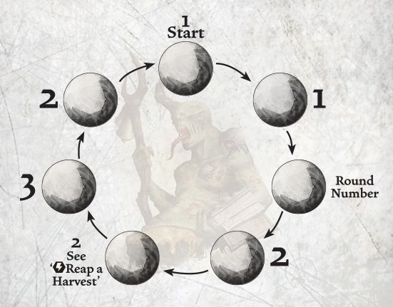 As the scroll states, it increments by one after your turn (guaranteed, predictable), after damage is inflicted on a friendly fighter (less predictable, your opponent has more control here) and after your turn if you hold more treasure tokens than your opponent (middle-road guaranteed, up to both you and your opponent). Being able to accurately predict and control the flow of this tracker is going to be the deciding factor in how hard this warband can hit when they get into combat; likewise, a savvy opponent can save effects to bump you off of your 3 values.