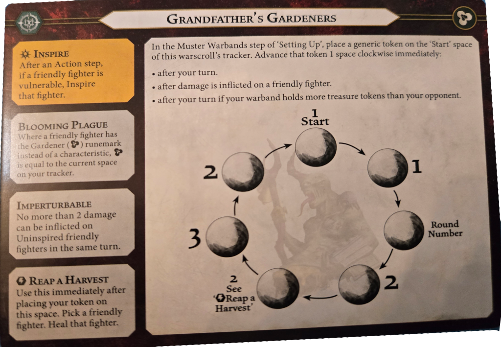 This warband has one of the most grimace inducing inspiration requirements. Not being able to inspire unless your fighter is vulnerable for most warbands means you’d expect to see maybe one fighter inspire per game, if you’re lucky. Fortunately, the Gardeners have a trick in their pocket.