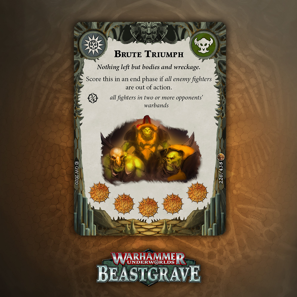 Oh, sure you might table your opponents sometimes. But it’s not the norm, and Annihilation is rarely run even in the most aggro warbands. It’s better to have objectives you can score to power up. Raf: I don't think anyone has been able to consistently table an opponent since the early Shadespire days.