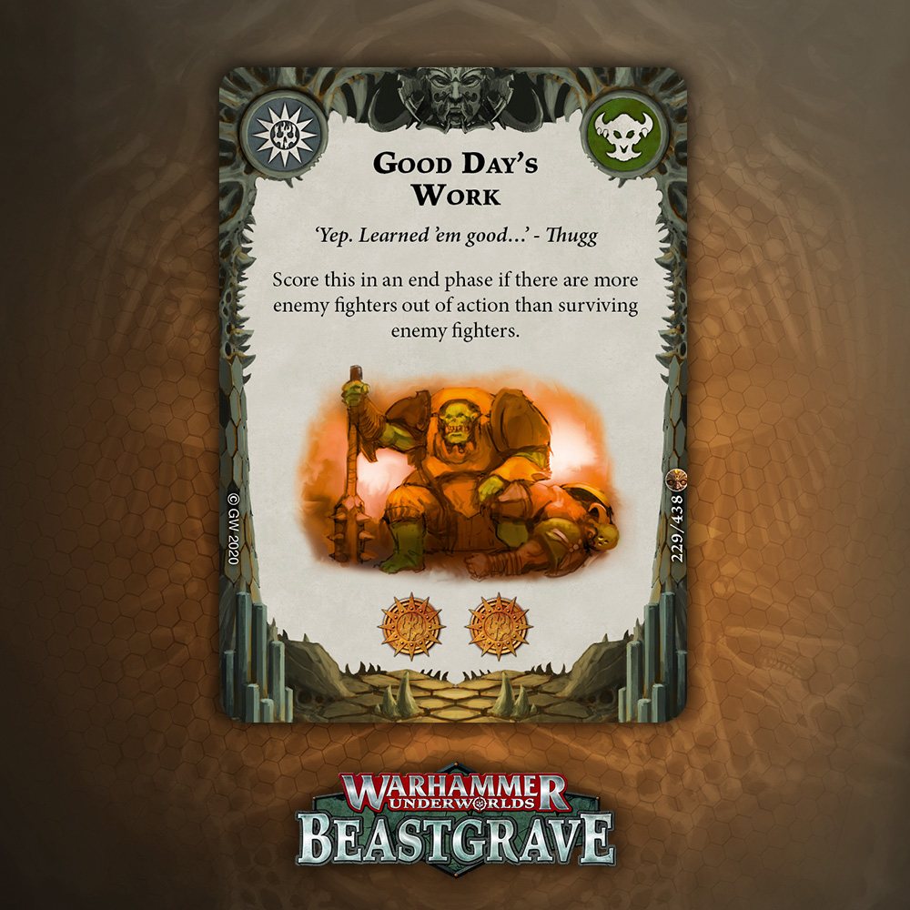Surge for holding objectives is extremely good, but holding 2 with a three fighter warband is pretty difficult, and not what you want to be doing. Got It, Boss has the advantage of being a single action to score, and still scorable if you lose 2 fighters. This… isn’t as good.