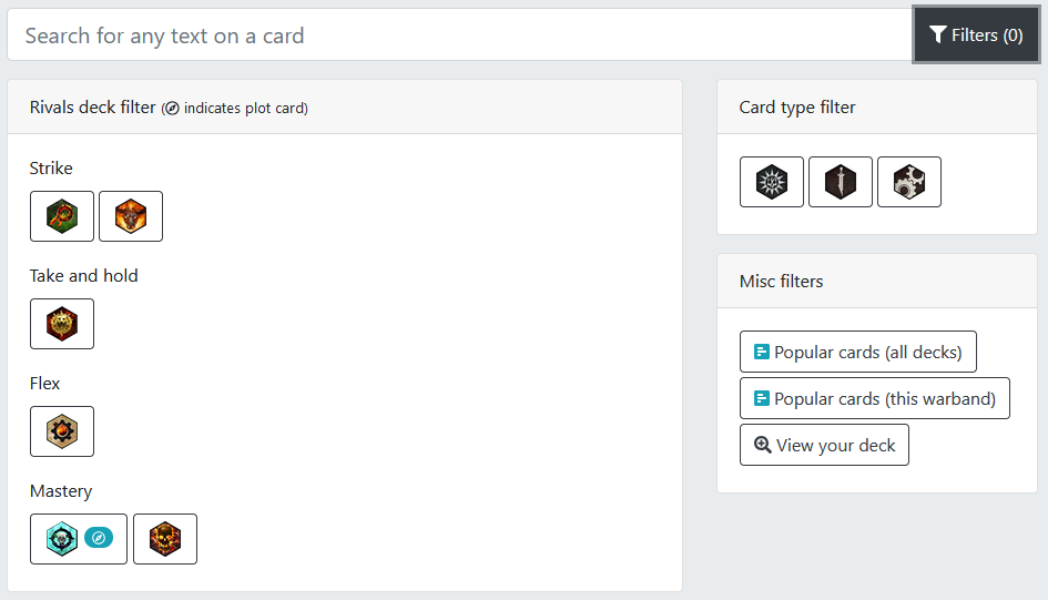 This is where the filtering magic happens. Credit: underworldsdb.com