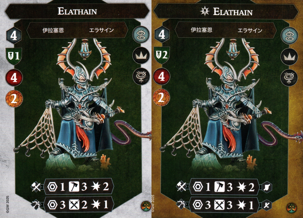 Elathain is fairly durable for being an elf between his 4 health and being on shield saves. Like all the elves in the warband, he's on 4 move which doesn't technically change when inspired but the Tides of Death warscroll ability is granting everyone +1 move during the second round anyway so it kind of does.