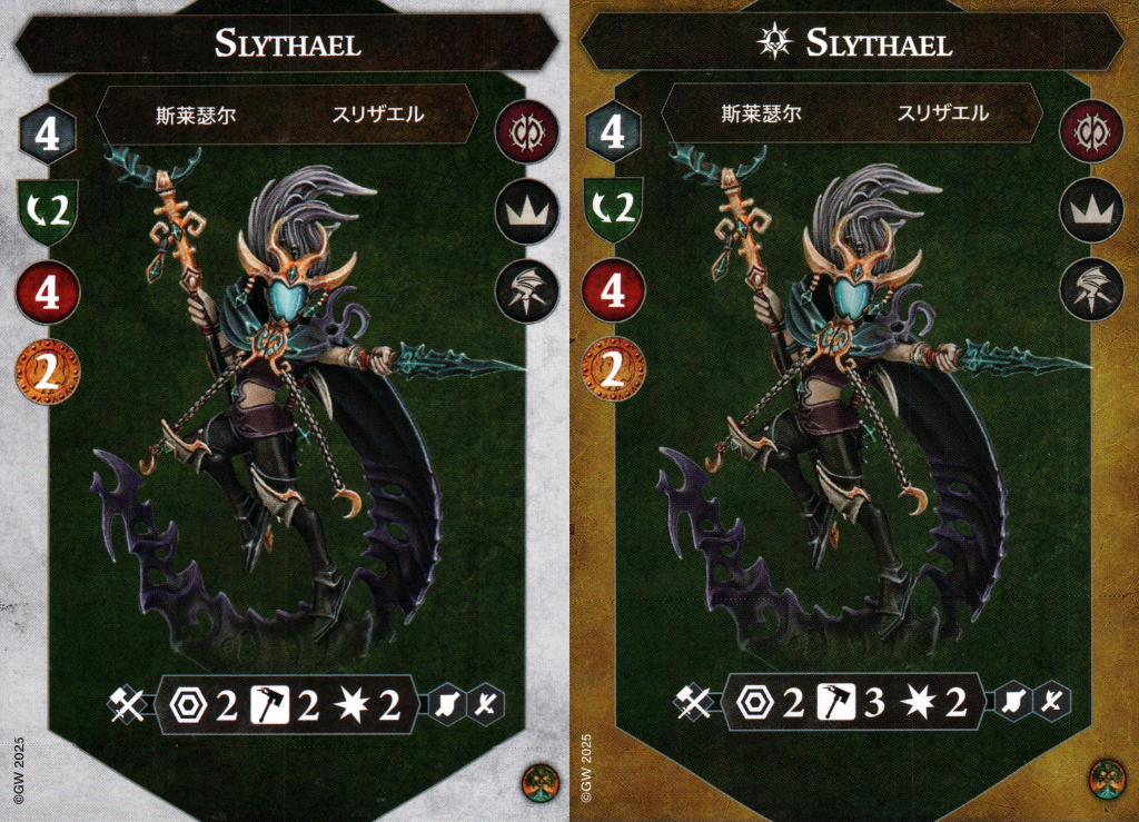 Her offensive profile shares the same range as Slythael which is quite helpful, but she's not going to be nearly as accurate since she looses out on cleave and ensnare while also being stuck on 3 swords even when inspired. Fortunately, she picks up grievous once her card flips, so while she isn't landing as many attacks as her leader, she's going to be hitting harder. She's a prime candidate for some attack re-roll tech.