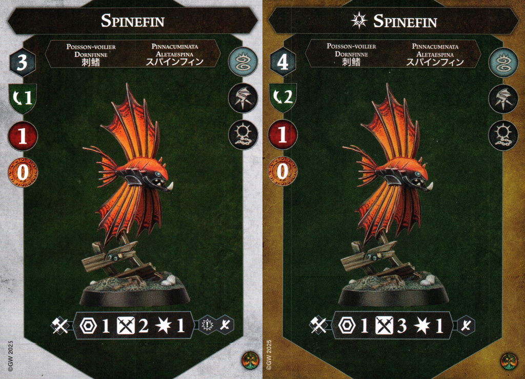 Spinefin is back… sort of. Instead of being a bizarre token/fighter thing that pops up all over the board, Spinefin is just a normal fighter this time around. There's still no reward for killing the fish since it has 0 bounty, so the enemy dedicating a turn to taking it out will still feel bad for them even if it won't prove to be very difficult to do with these defensive stats. Oh yeah, Spinefin flies, too!