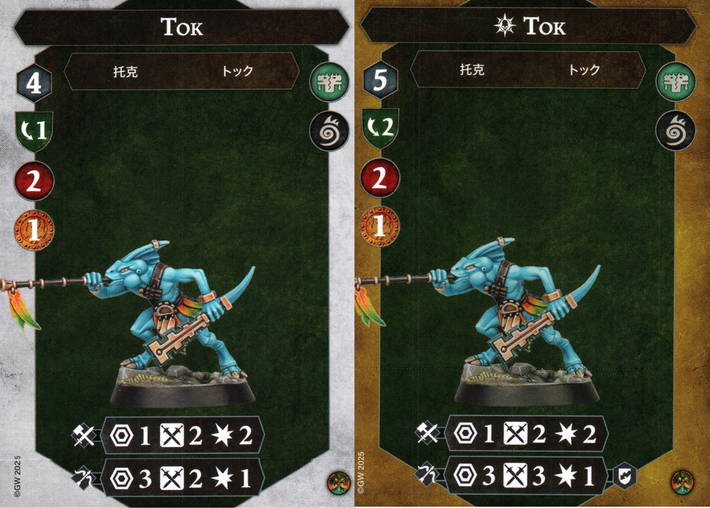 The first of the skinks who chooses to forego a shield, Tok is downgraded to dodge instead of shield for saves.