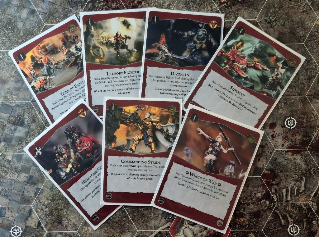 The power cards are similar. I can't take multiple copies of Wings of War, but I can take a whole pile of cards that effectively do a similar thing. Between Wings of War, Sidestep, Commanding Stride, Illusory Fighter, Diving In, Lure of Battle, Headlong Charge, and even the Get A Move On, Ya Gitz! ability on my warscroll, I can very safely assume I will have access to at least one effect to give my fighters an increased charge range during the first round. The redundancy of having multiple copies of the same effect meant I could safely build my strategy around having access to these cards – or at least something that's functionally similar to them. Similarly, there's a whole package devoted to increasing the accuracy of my attacks – you know, those things I'm basing my entire game plan around – in the form of Determined Effort, Brawler, Hidden Aid, Accurate, Deadly Aim, Sharpened Points, and Keen Eye. They all do it slightly differently, so the raw redundancy isn't quite as high as it is for the other sets, but the same idea was applied here.