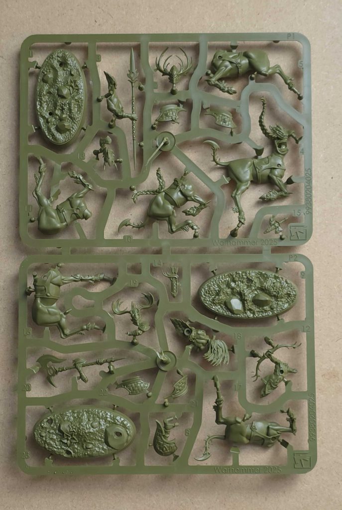 Blake Law: This warband was an absolute joy to assemble. The detail on these models are crisp. The sculpts are so unique and fresh for the sylvaneth range. Previously, we had a centaur type model in the Skaeth’s Wild Hunt warband. This seems to be a refinement of that model. One of the things I liked about the sculpt is that they did not sculpt in texture. This allows painters to create as much or as little as they want. Want to make that leather shield metal? Absolutely okay to do.