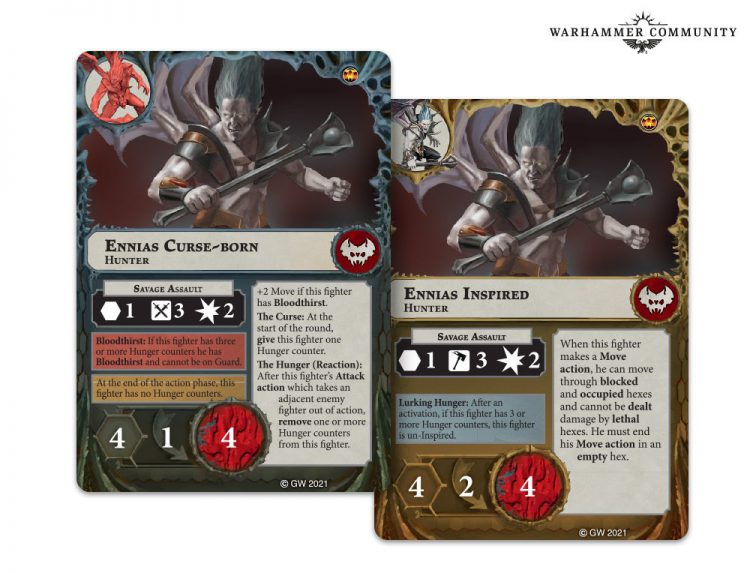 The Crimson Court is the first faction that basically has 3 states. Instead of just Uninspired and Inspired, we get Bloodthirst as well, which takes Guard away as an option for the fighter but gives them other utility. It’s basically a separate Inspiration path, giving them a bit of flexibility in how to proceed into later stages of the game.