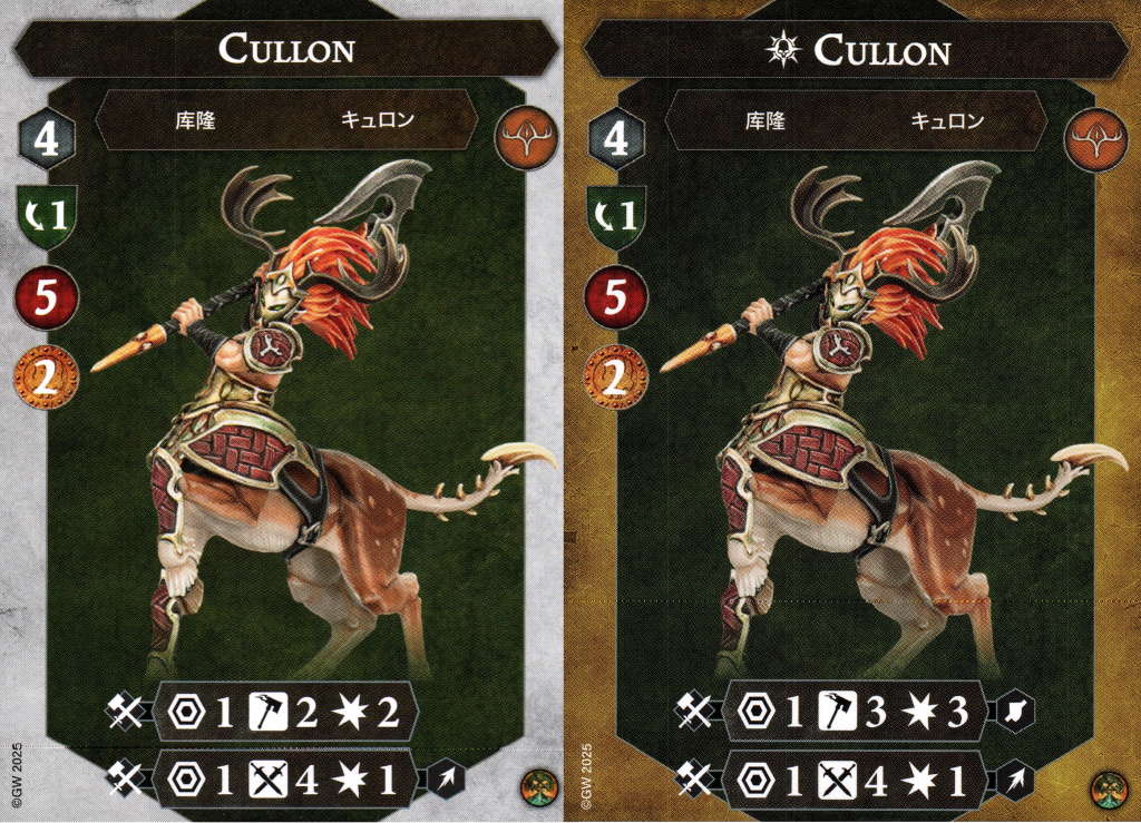 Cullon is your other front line fighter and the poor guy is the only one who doesn't have a unique warscroll ability. His profile resembles Ylarin's, but the shield save is traded for dodge. That's a pretty steep downgrade, but having 5 health can help him weather a few hits still. The 4 movement here will be even more useful than on the other fighters, because Cullon is the only one who is restricted to range 1 attacks. Like Ylarin, Cullon's basic profile doesn't change when inspired.