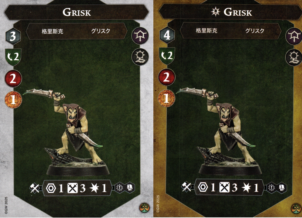 Finally, we get to the grimy little hobgrot. Grisk starts on 3 speed like the rest of the warband, but only has a piddly 2 health. Having 2 dodge at least increases the chances that he won't explode into a cloud of hobgrot bits when the first enemy gets near him, but you're still going to want to keep him safe if you plan to leverage Hobgrot Cunning during the game. He is the only fighter to bump up to 4 move when inspired, so if you ever do get him inspired (which involves him being adjacent to an enemy) you can at least have him run away if he survives.