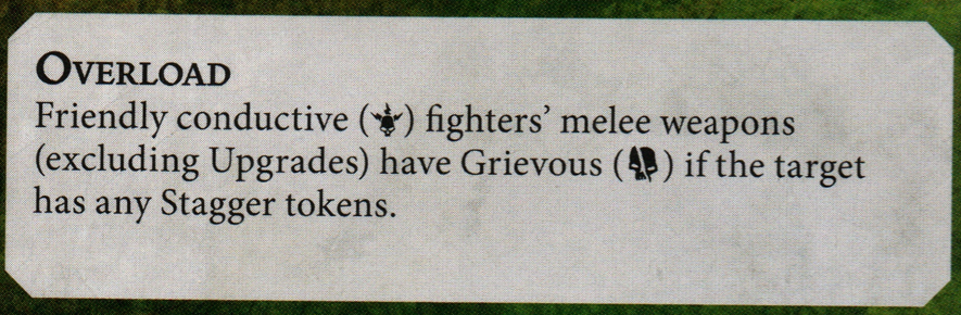 This weird weapon has still yet to find its home. In theory, you could put it onto a high health fighter who has taken a lot of damage to have a very accurate attack… but it's only 2 damage. Most fighters who can take 3-4 damage and still be alive and kicking already come with profiles that are as good as this or better. It's definitely one of the weakest weapons with the least utility in the game as of now. If anyone's found a use for Fuelled by Pain, I'd love to hear it – drop a line in the comments or hop into the Goonhammer Discord to tell me.
