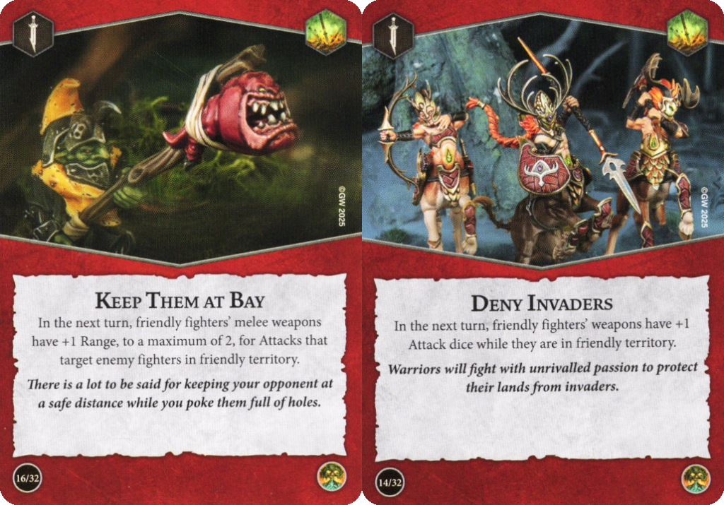 Ploys that buff your next attack. You can consider weapons to be similar effects and hold them to the last minute. credit: UnderworldsDB.com